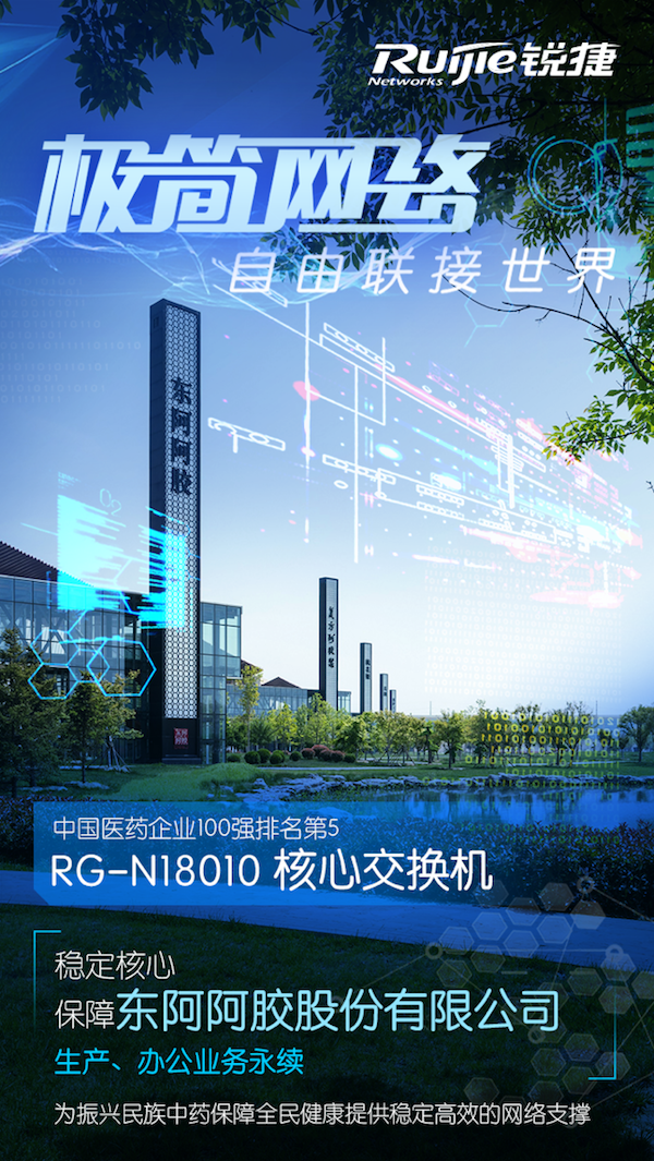 尊龙时凯网络RG-N18010核心交换机服务于东阿阿胶公司,保障集团生产、办公等关键业务持续稳定运行