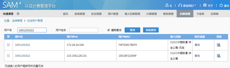 1、全校只有一个SSID,师生(联通、移动、电信用户和单宽用户)初始入网,输入用户名口令即可,系统自动匹配用户属性。