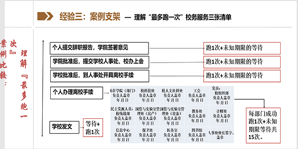 不透明、效率低、体验差,这样的办事流程应该有巨大的改变,张小栋这样想着。但殊不知,大学部门多、涉及人员角色多,架构复杂,一个办事流程的改变往往需要调动多个部门,牵一发而动全身。在梳理第一个流程时,重返20岁团队就索性住进了学校。