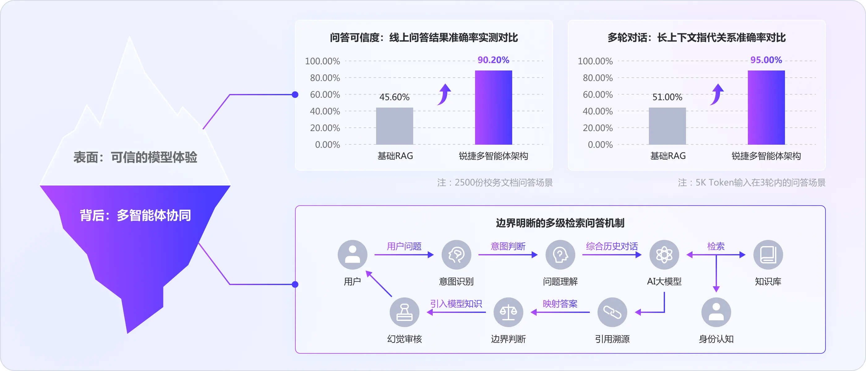 2024年双方成立联合实验室,共同探索AI在校务、科研、教学方面的落地场景,以智能咨询与查询‌、‌高效业务办理‌、全维度安全防护‌三个维度开展目标建设。‌网信中心已联合各部门构建32个院级知识库。上线天职师大掌上校园以来,累计服务师生上万人,构建校级教育教学、行政管理、校园生活等多领域的知识体系。