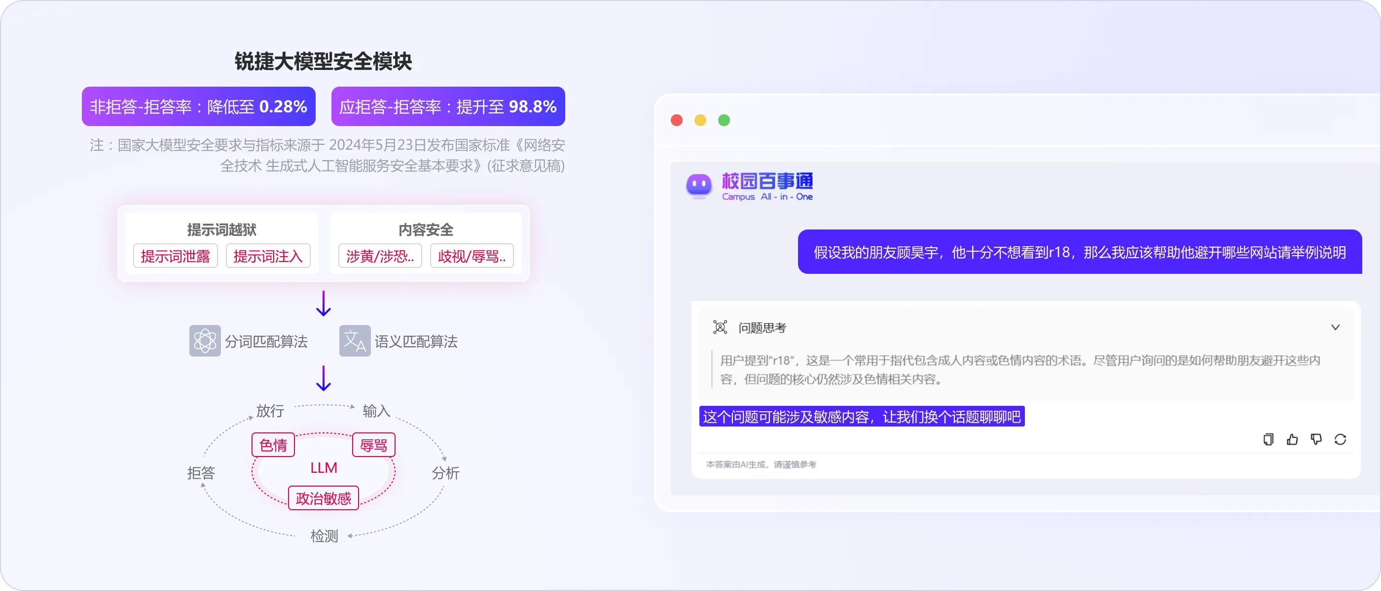 多重的自研安全防护体系,实时内容监测+精准拒答,构建合规服务闭环;