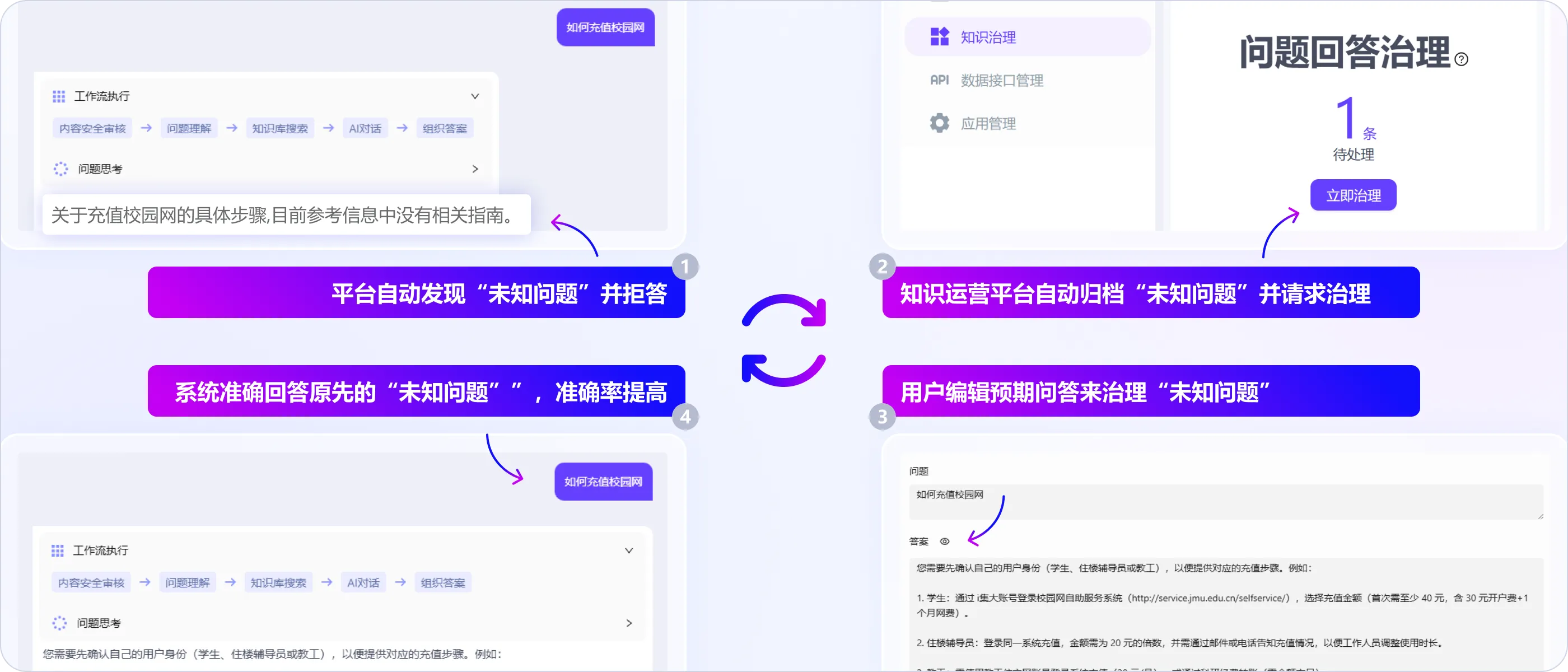 Q:大模型的回答效果和校园数据质量有很大关系,如何持续优化数据,消除数据缺陷?