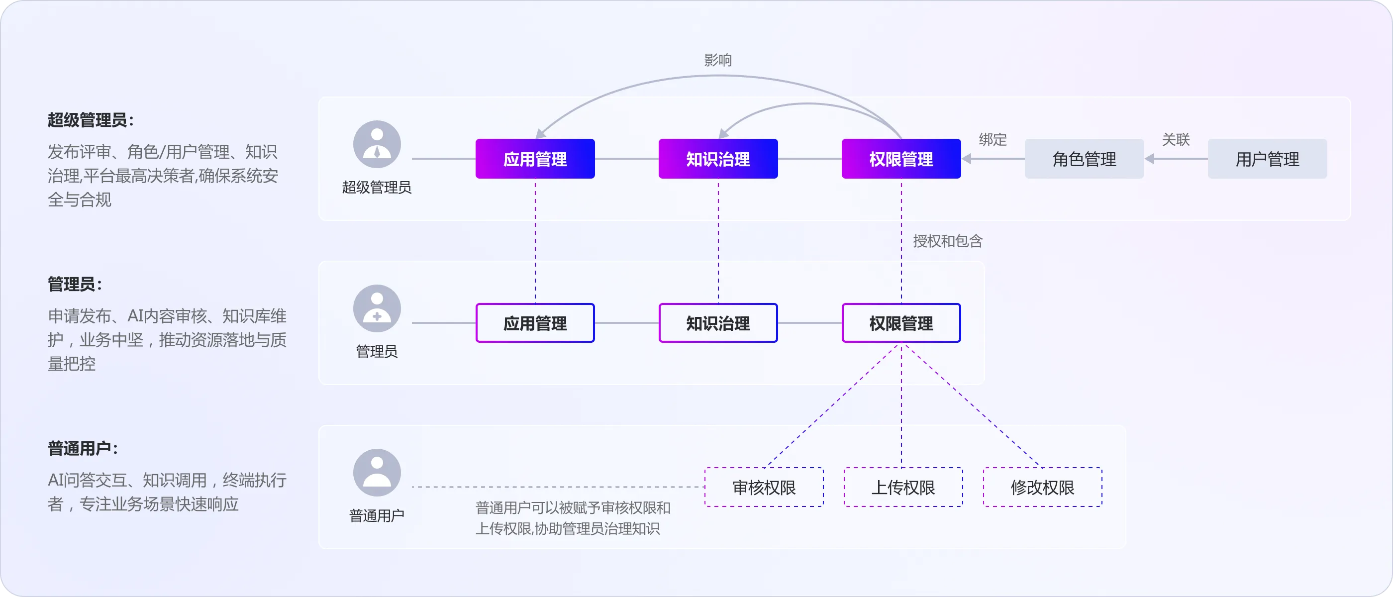 数据安全主要体现在两方面:1. 一体机本地部署,保障校园数据不外流;2. 知识库权限管理,通过为不同角色身份配置不同的知识库权限,进行数据隔离,每个知识库的问答和管理权限都不同。