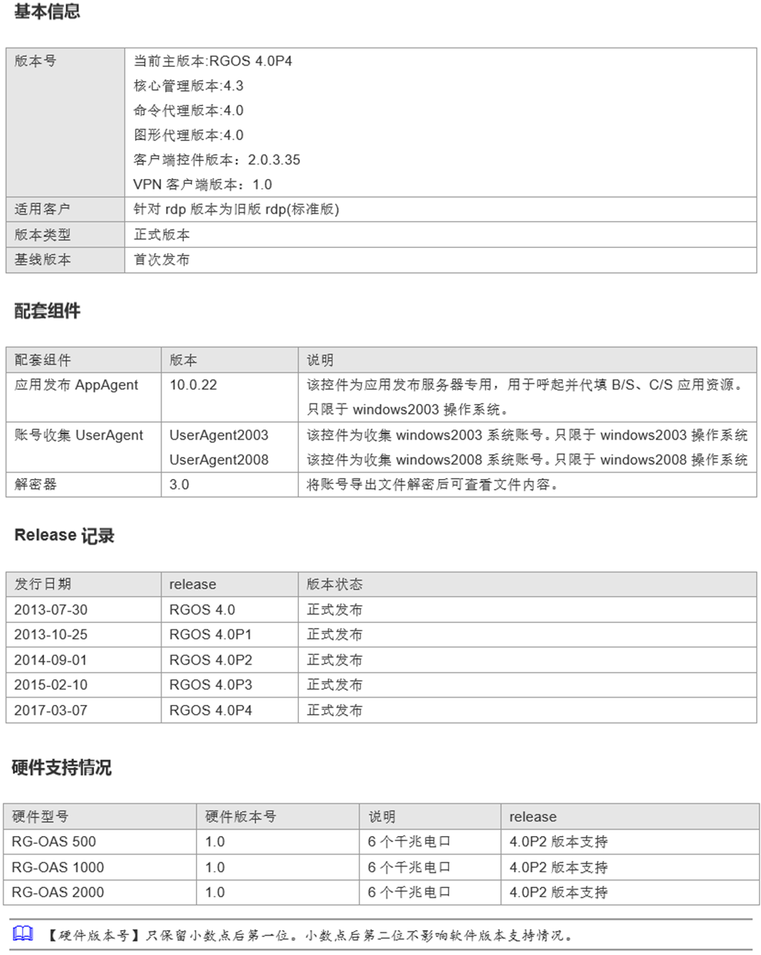 RG-OAS 500/1000/2000系列统一安全认证和运维审计系统RGOS 4.0P4版本
