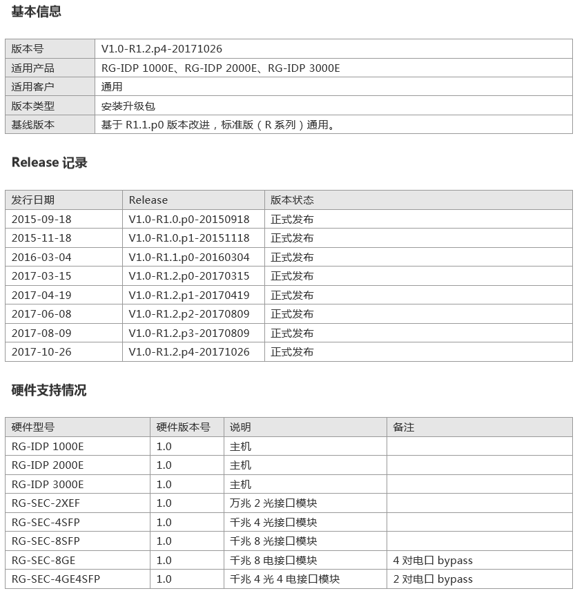 第二代RG-IDP 1000E/2000E/3000E系列入侵检测防御系统R1.2.p4-20171026版本