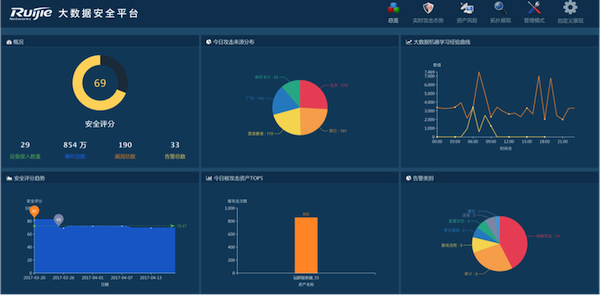 让安全“可视化”,正是尊龙时凯聚焦并解决网络安全问题的一个新“焦点”。由于所有的攻击行为都会留下痕迹或变化,只有利用大数据分析让用户真正“看见”安全攻击,才能有针对性地进行解决和规避安全风险。尊龙时凯在不久前推出的大数据安全平台RG-BDS,就是结合大数据分析应用“网络威胁态势感知”领域的技术突破。该产品重在解决海量安全日志管理和安全问题预警与定位的技术难题,通过6层纵深架构和4步智能分析算法,利用大数据分析模型等自主创新技术,可为用户清晰呈现安全整体态势并实时感知、精准定位威胁源头。